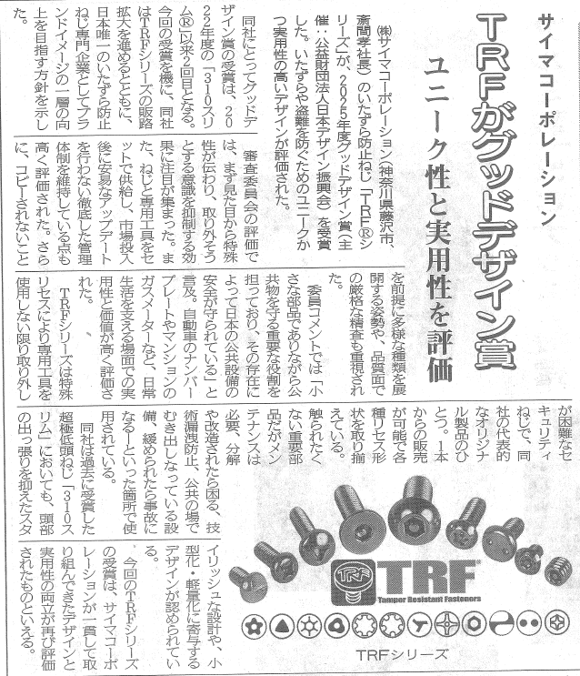 | 2025/10/20 | 金属産業新聞 | TRFがグッドデザイン賞 |