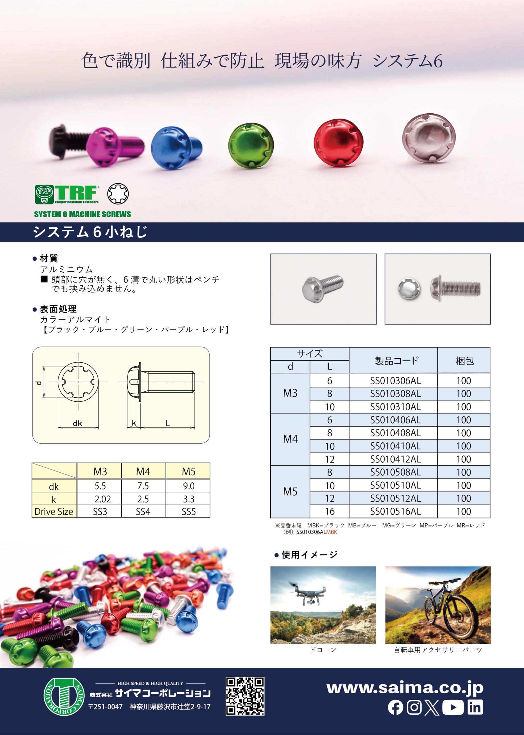 製品カタログ いたずら防止ねじ「TRF®」 システム6 超極低頭ねじ「310スリム®」 樹脂専用タッピングねじ「ノンサート®」 1本から購入可「インチねじ」 ねじ総合カタログ 「310スリム®」「ノンサート®」の図面ダウンロードはこちら 会社案内・サービスなど 会社案内 トルクアナライザー TAKセミナー(国内) 中国スタッフ向けセミナー(日本語) 中国スタッフ向けセミナー(中文)