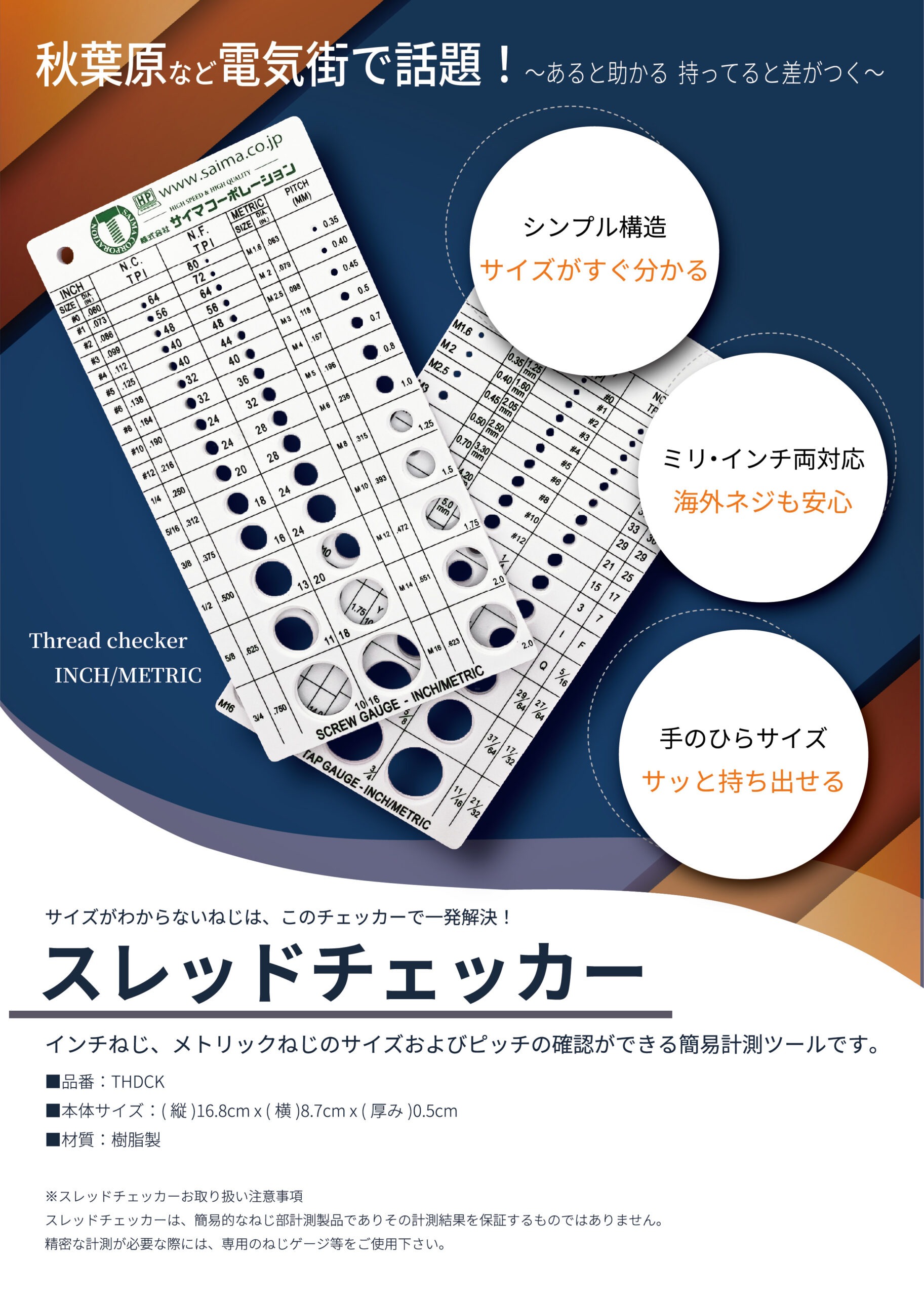 インチねじ、メトリックねじのサイズおよびピッチの確認ができる簡易計測ツールです。