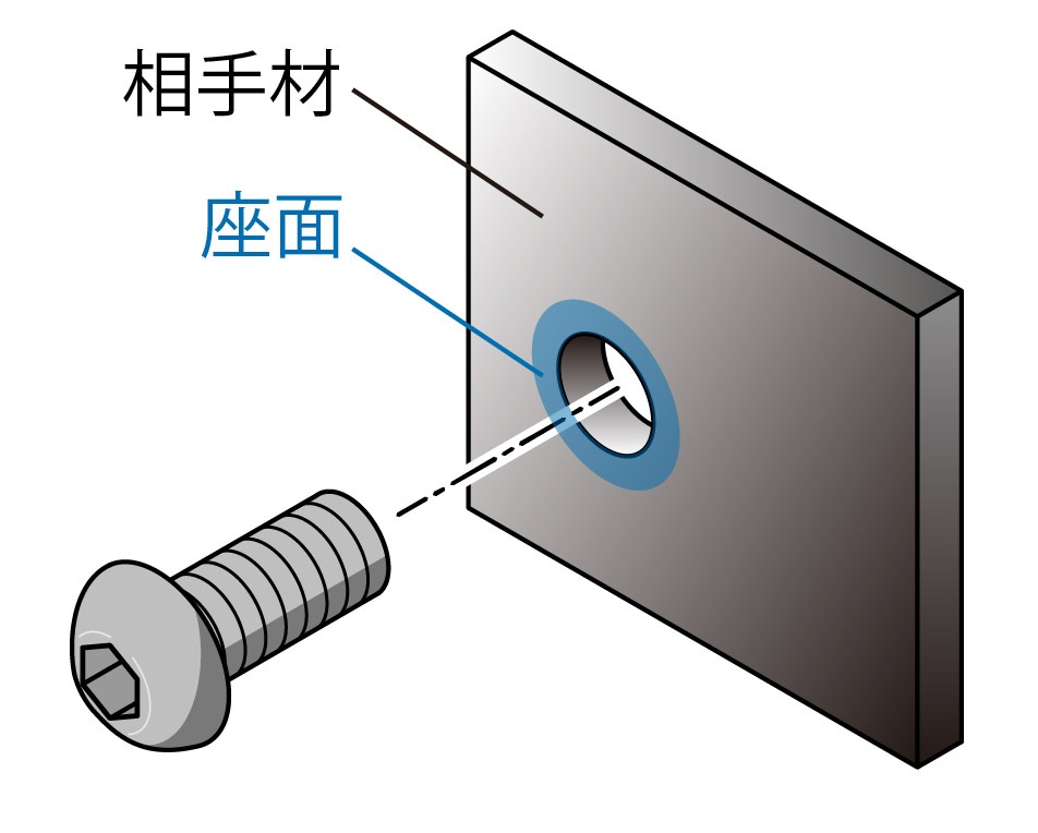 非締結物とねじ頭部の接触面を座面と呼び、その面積を座面積と表現します。